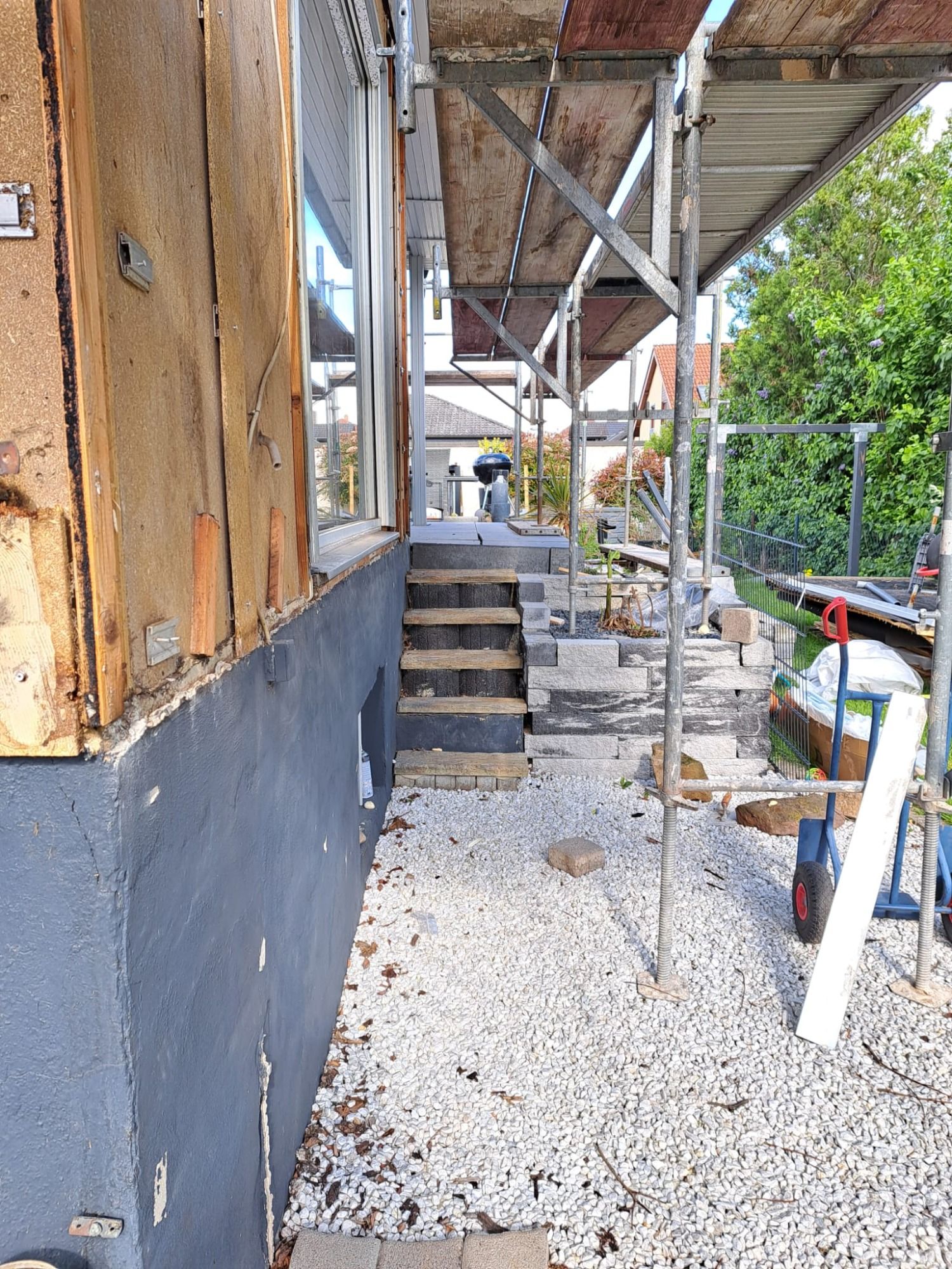 Gerüst wurde bauseits gestellt zum Schutz unserer Mitarbeiter.