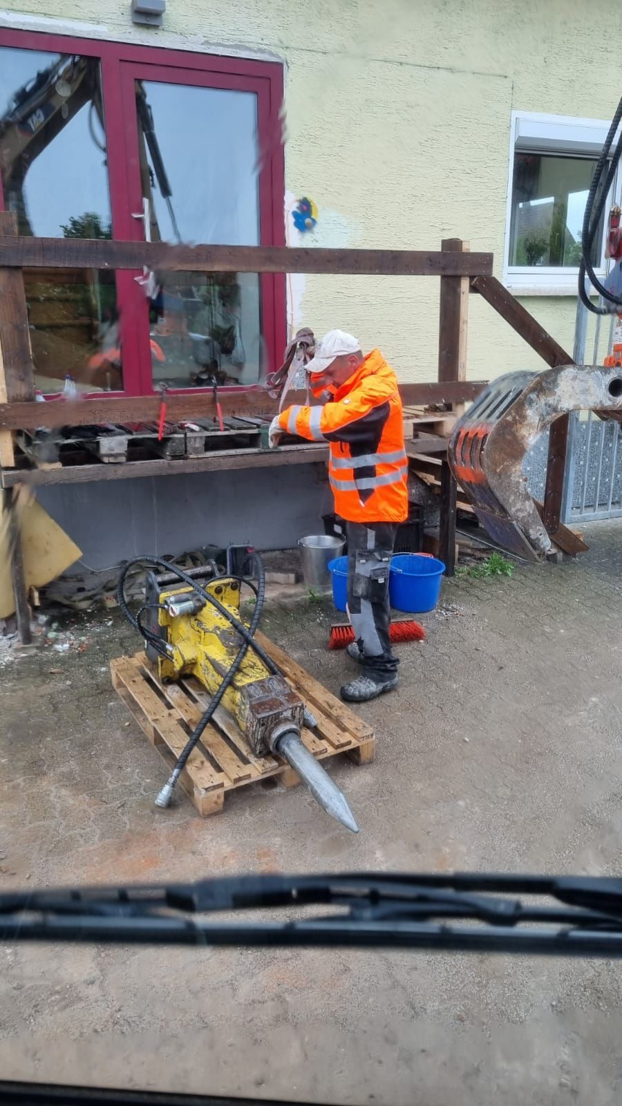 Hier wurde eine Betonbodenplatte mit 20 cm Stärke und 86 qm mit einem Minibagger 5 Tonnen entfernt mit einem saubernen Schnitt zur bestehenden Bodenplatte in der Scheune getrennt