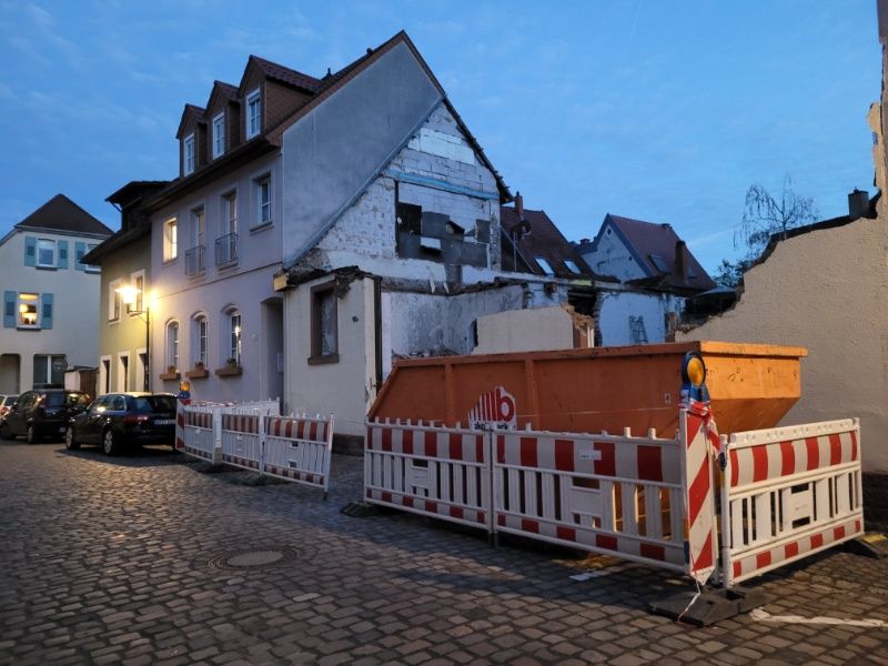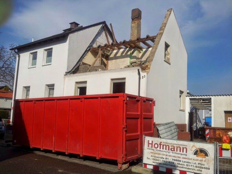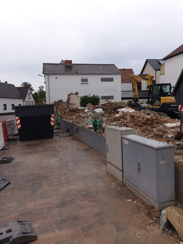 Entkernung, Rückbau und Abbruch einer Doppelhaushälfte mit Anbauten und Keller in Frankenthal Pfalz.