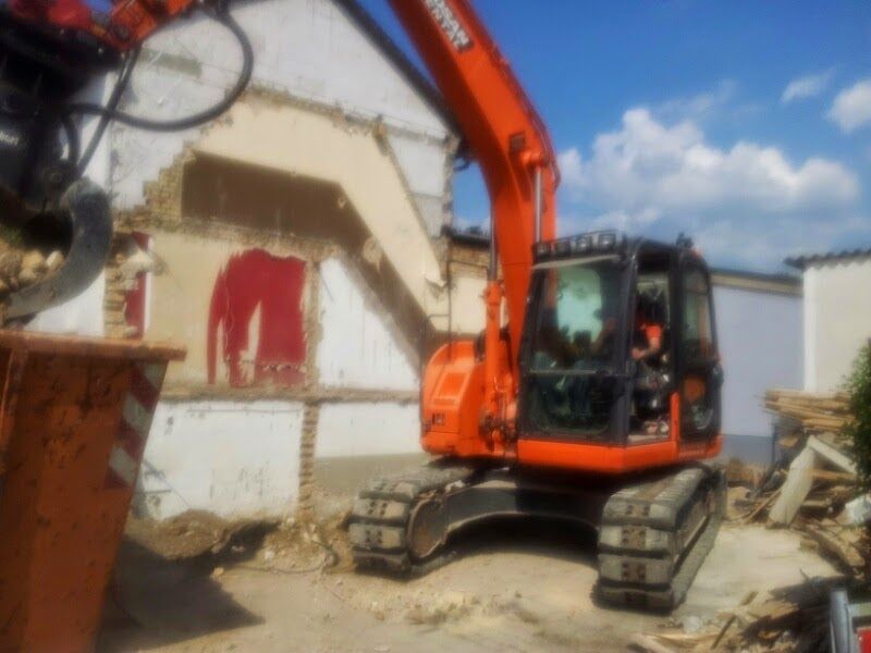 Hier wurde ein kleines Anbauhaus mit einem Minibagger 8 Tonnen entfernt unter schwierigen Bedingungen